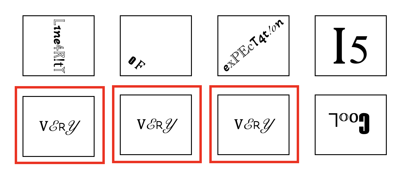 A more clever approach is to call their API and count duplicates. Intuitively, the larger their database, the fewer duplicates we expect to see. Define a random variable \(D_{i,j}\) which is 1 if the \(i\)th and \(j\)th calls return the same CAPTCHA and 0 otherwise. (To avoid double counting, we’ll assume \(i < j\).) For example, in the figure below, the \(5\)th, \(6\)th, and \(7\)th calls returned the same CAPTCHA so \(D_{5,6}\), \(D_{5,7}\), and \(D_{6,7}\) are all 1.