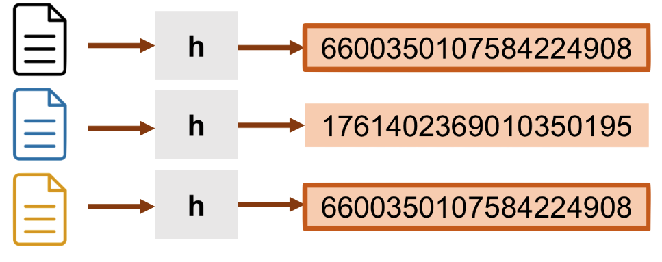 Our goal is to construct a compact “fingerprint” \(h(f)\) for any given file \(f\) with two properties: