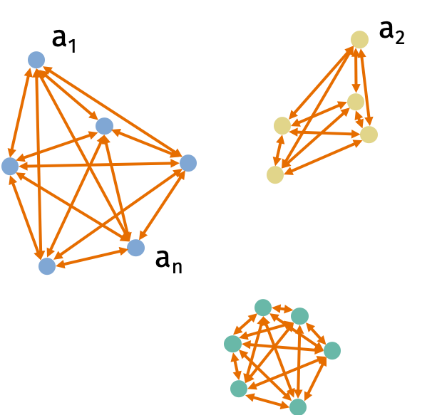 Consider the \(k\)-means clustering problem. We are given data points \(\mathbf{a}_1, \ldots, \mathbf{a}_n \in \mathbb{R}^d\). Let \(C\) be a set of clusters \(\{C_1, \ldots, C_k\}\). The cost of the cluster is \[\begin{align} \textrm{Cost}(C) = \sum_{j=1}^k \frac1{2 |C_j|} \sum_{u,v \in C_j} \| \mathbf{a}_u - \mathbf{a}_v \|_2^2. \end{align}\] The problem is to find a set of clusters \(C\) that minimizes the cost.