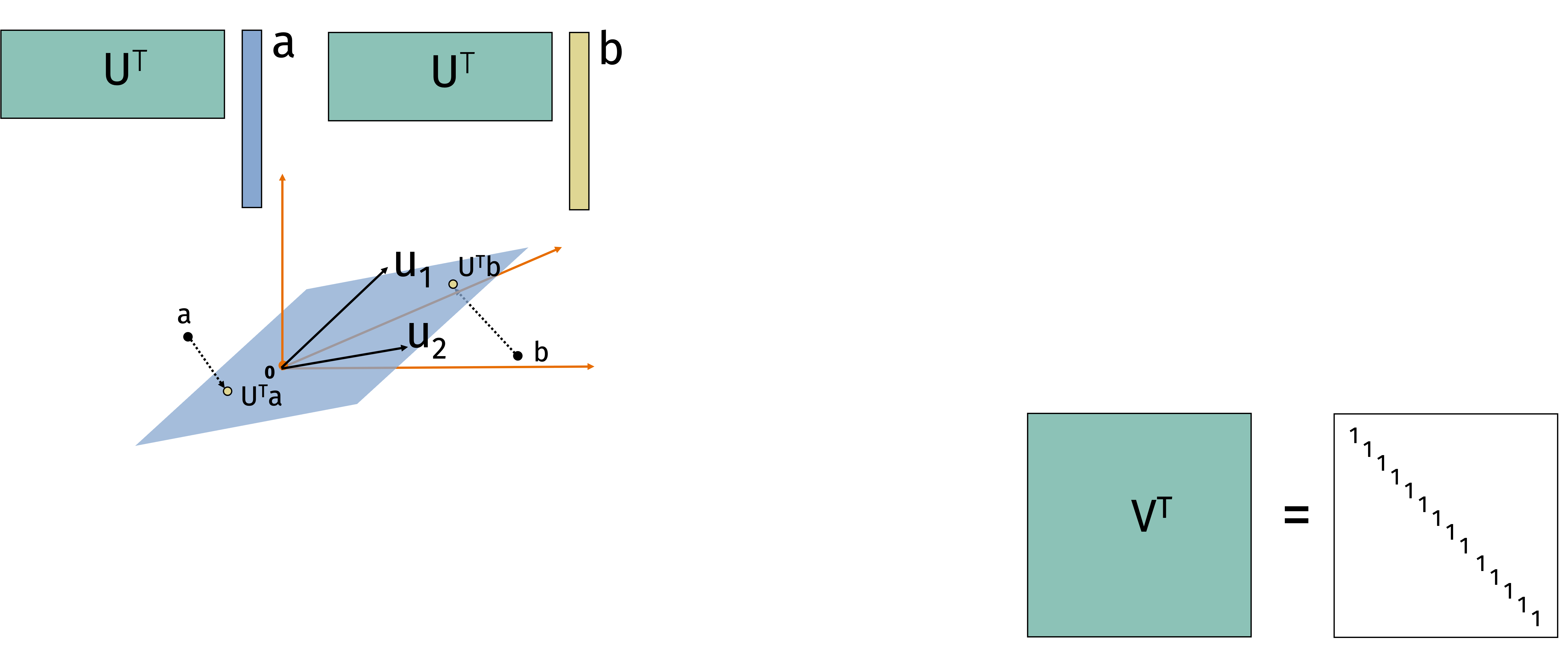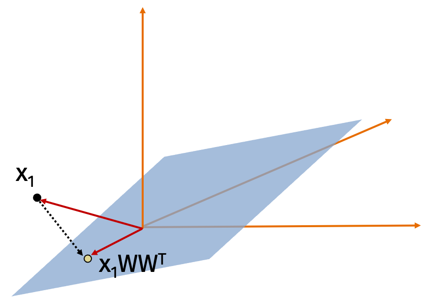 Multiplying a vector by a matrix \(\mathbf{U}^\top\) with orthonormal rows projects the vector into a lower dimensional space (representing it as coordinates in the lower dimensional space).
