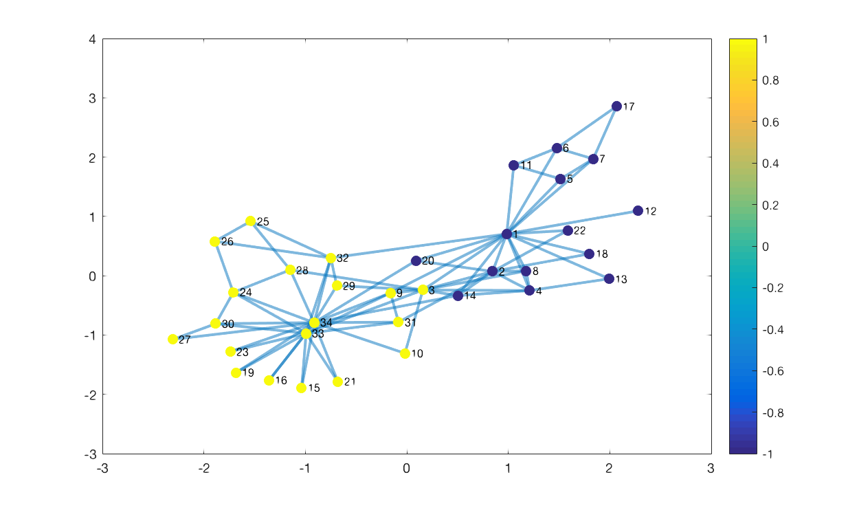 An example of this problem is understanding community structure in social networks. In 1977, Zachary studied a karate club that split into two groups.