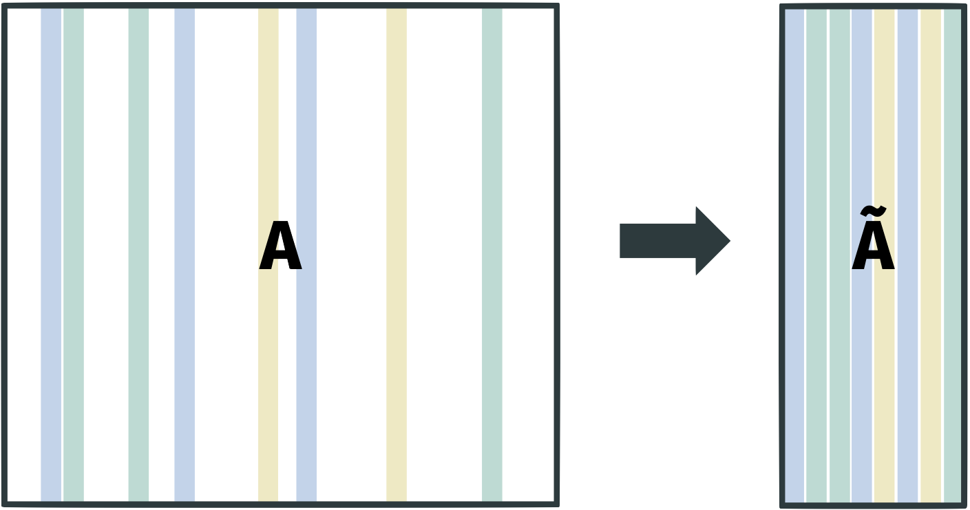 Consider a matrix \(\mathbf{M} \in \mathbb{R}^{n \times n}\). The main idea of randomized numerical linear algebra is to compress a matrix using a randomized method such as subsampling and then solve the problem we are interested in on the compressed matrix.